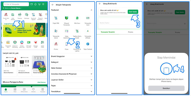 - Tempelkan kartu e-money ke belakang smartphone (gambar no. 4)